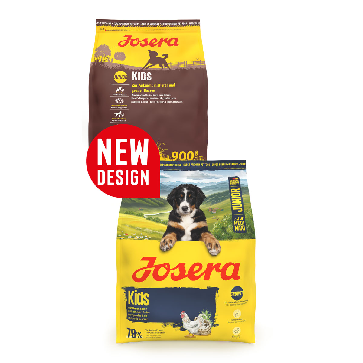 Für unsere jungen Helden, die hoch hinauswollen: Josera Kids! Das spezielle Hundefutter für mittlere und große Hunde im Wachstum hat eine auf den Welpen zugeschnittene Rezeptur mit Huhn & Reis.