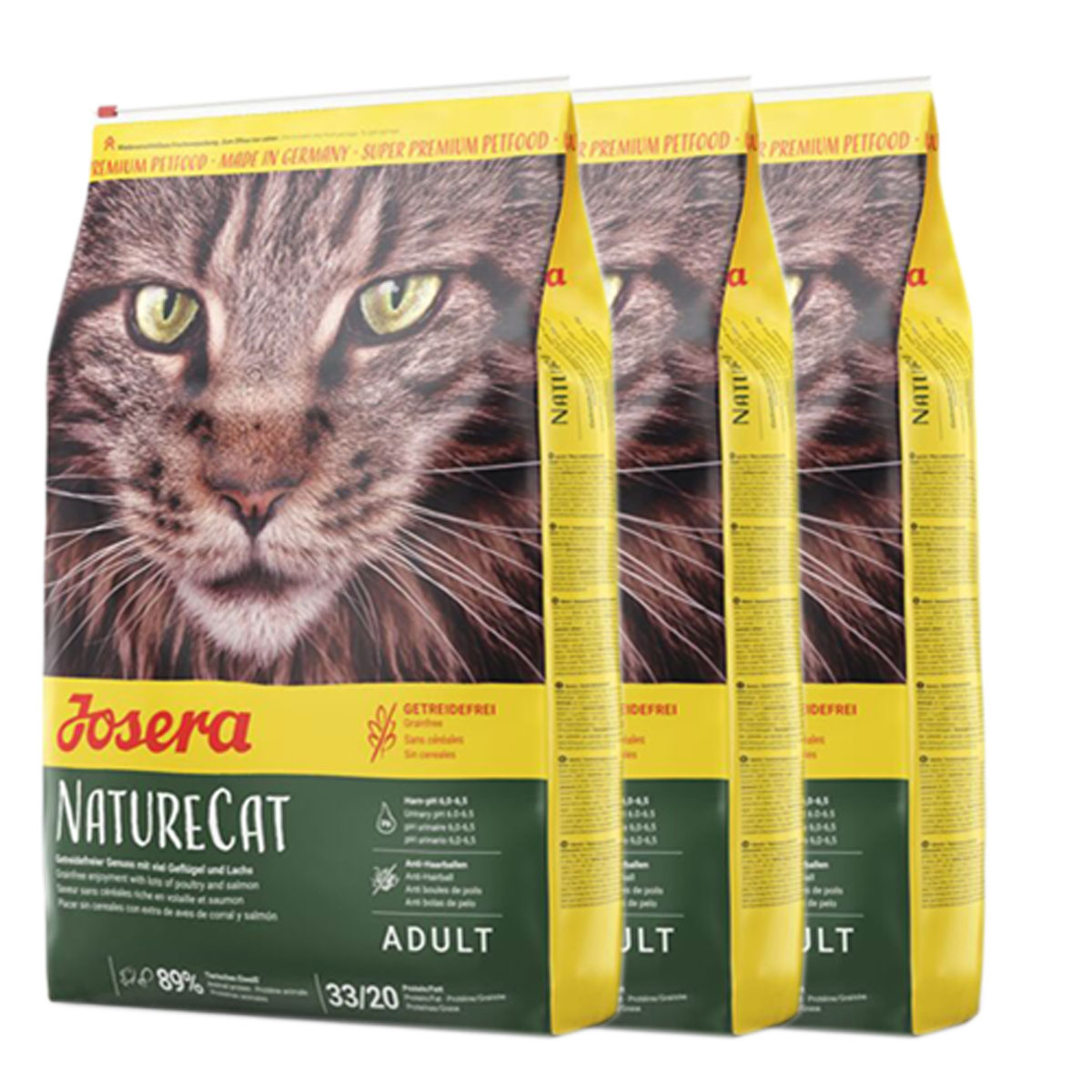 Josera NatureCat ist ein wahrer Genuss für alle Abenteurer. Die getreidefreie Rezeptur versorgt energiegeladene Katzen mit allen wichtigen Nährstoffen und bringt außerdem eine Extraportion an gutem Geschmack mit. Geflügel und Lachs versorgen die Samtpfote mit wertvollem Protein. Erlesene Kräuter und Früchte sorgen zudem für eine willkommene Abwechslung im Napf. Das nächste Abenteuer kann kommen.